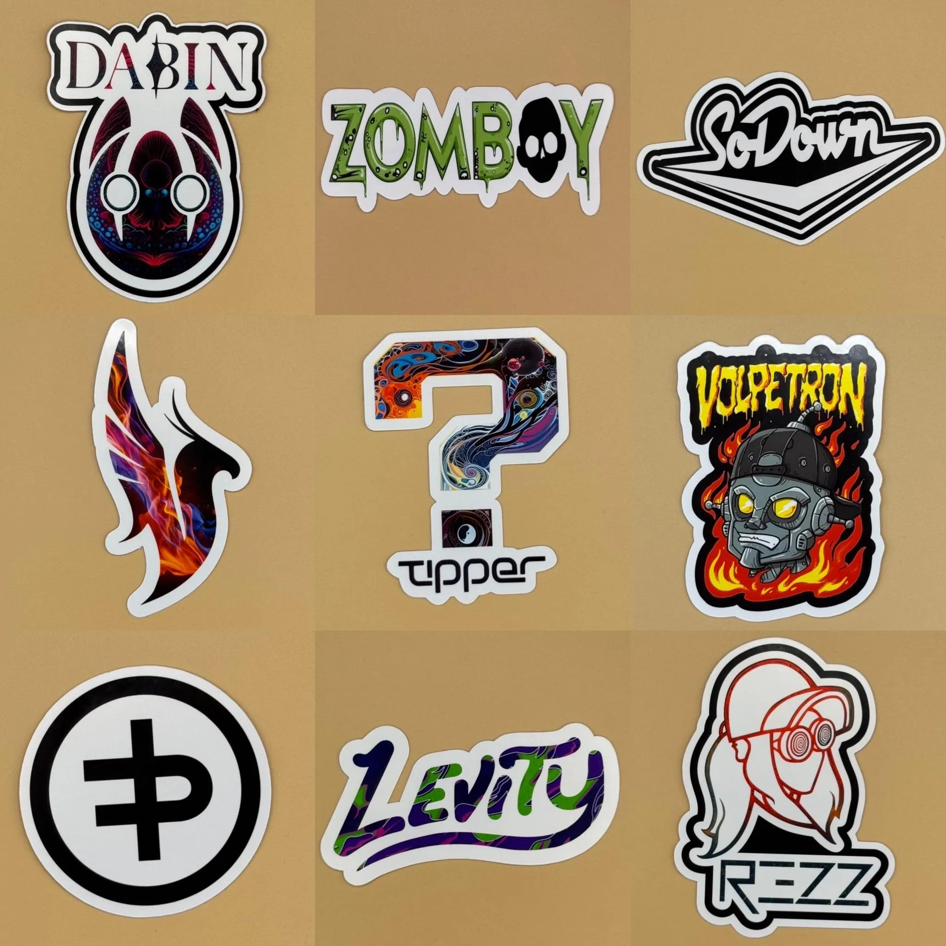 10 piece Sticker Pack Containing Random EDM DJ and Artist Logos and Designs. Made with Die Cut Glossy Vinyl Perfect for phones Laptops, lockers Or My favorite Gifting and Trading at Events 🫶🏼